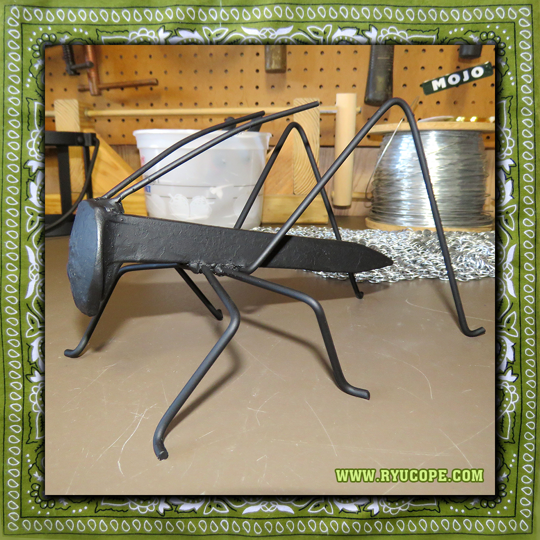 Time passed and, as far as I know, all of those railroad-spike crickets were discarded and forgotten. Still, I never forgot the simple elegance of those (SFW) hearth crickets. (I never forgot the NSFW ones, either, apparently, but let’s never speak of them again.) So when I finally got to a place in my life where I could have my own workshop and my own metalworking equipment, the very first thing I did was attempt to recreate (from memory) that classy hearth cricket that so enthralled me as a kid.